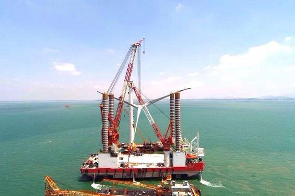 此次安裝完成的最后一臺風機采用風輪整體吊裝的方式,最大的難點為發電機需要單獨吊裝,同時還要專用吊具配合,以保證發電機與豎直面成6度的傾角,這對吊裝提出很高的要求。中鐵大橋局克服了施工當中海上季風等惡劣自然條件的影響,安全優質地完成了吊裝。